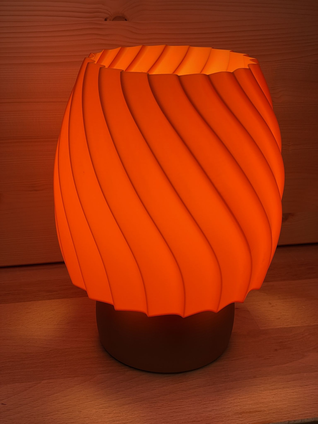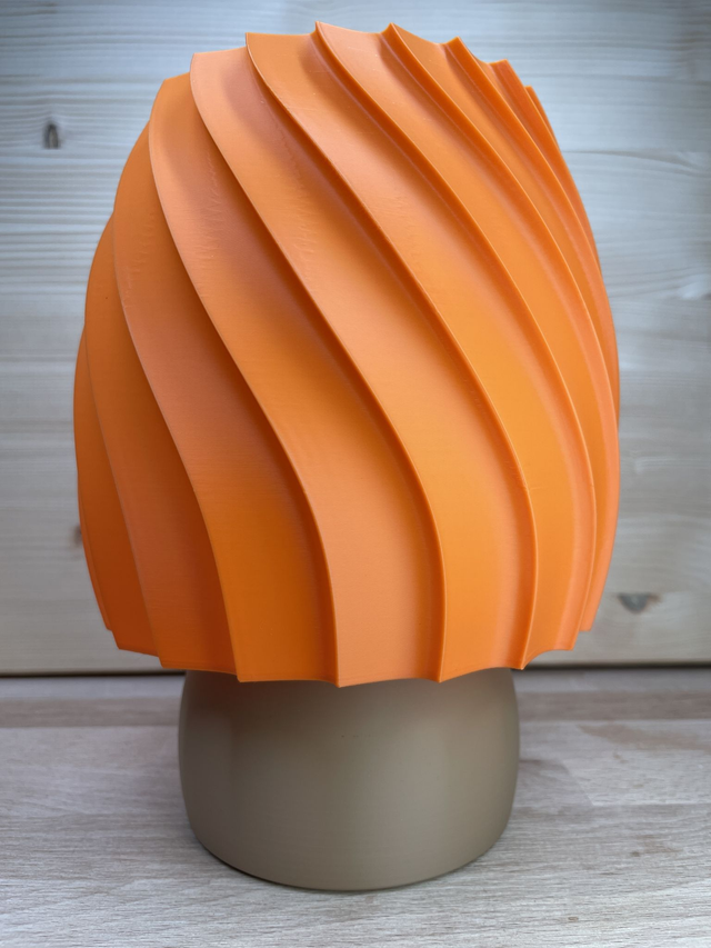 Aprico Bloom bringt Wärme, Farbe und Persönlichkeit in dein Zuhause. Der organisch gedrehte Lampenschirm in kräftigem Apricot-Orange sorgt für ein weiches, stimmungsvolles Licht, das deinem Raum sofort Charakter verleiht. Der hellbraune Fuß bildet einen ruhigen, natürlichen Kontrast und lässt das Design modern und ausgewogen wirken.